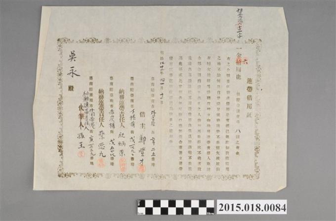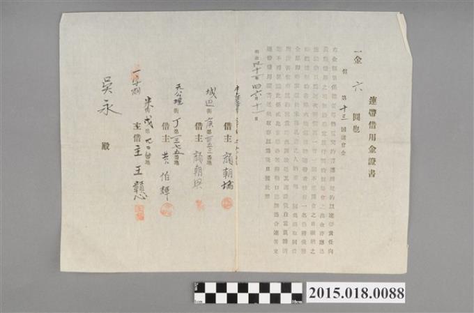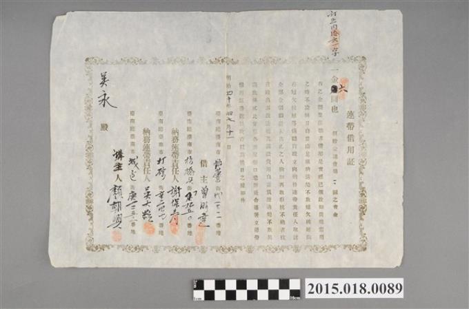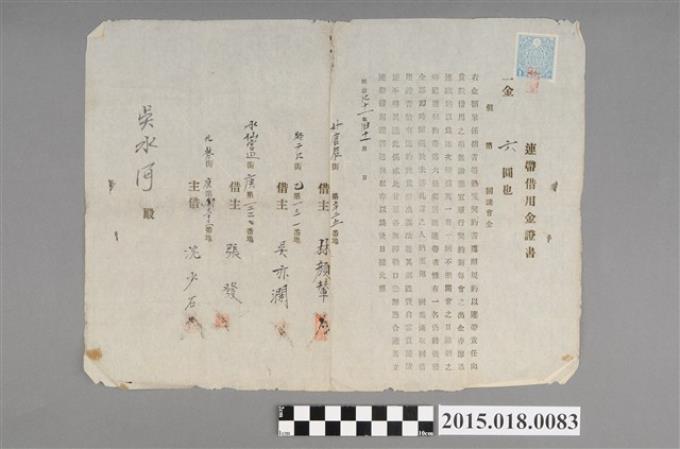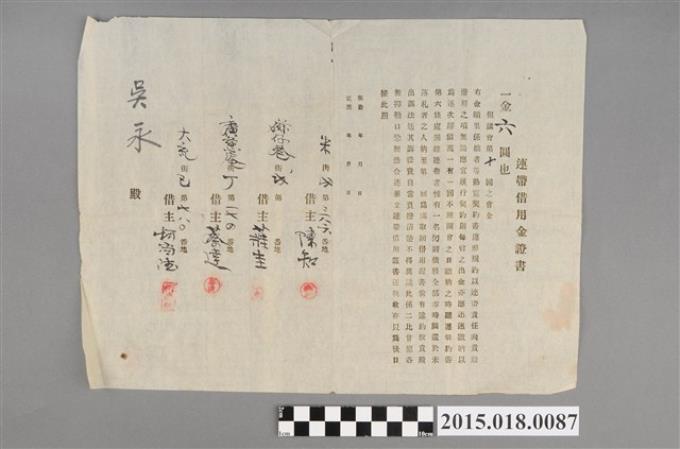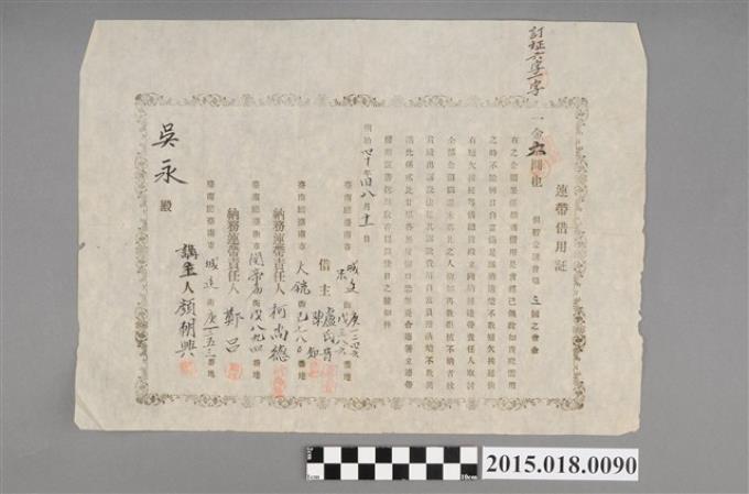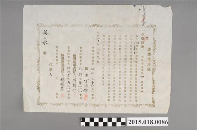 明治41年9月陳知等人給吳永之連帶借用金證書
