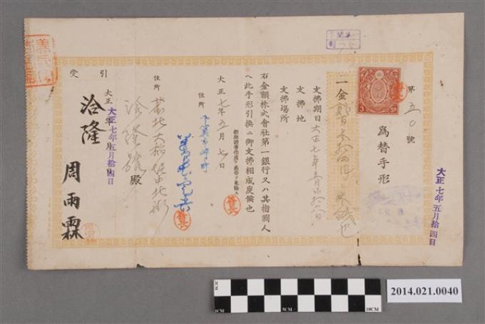 泰益號陳世望開給洽隆寶號周雨霖先生358圓匯款票據