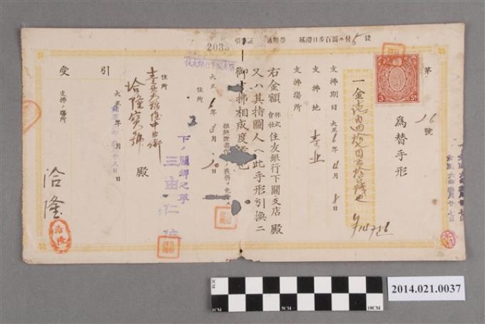 沼田利一開給洽隆號355.25圓匯款票據