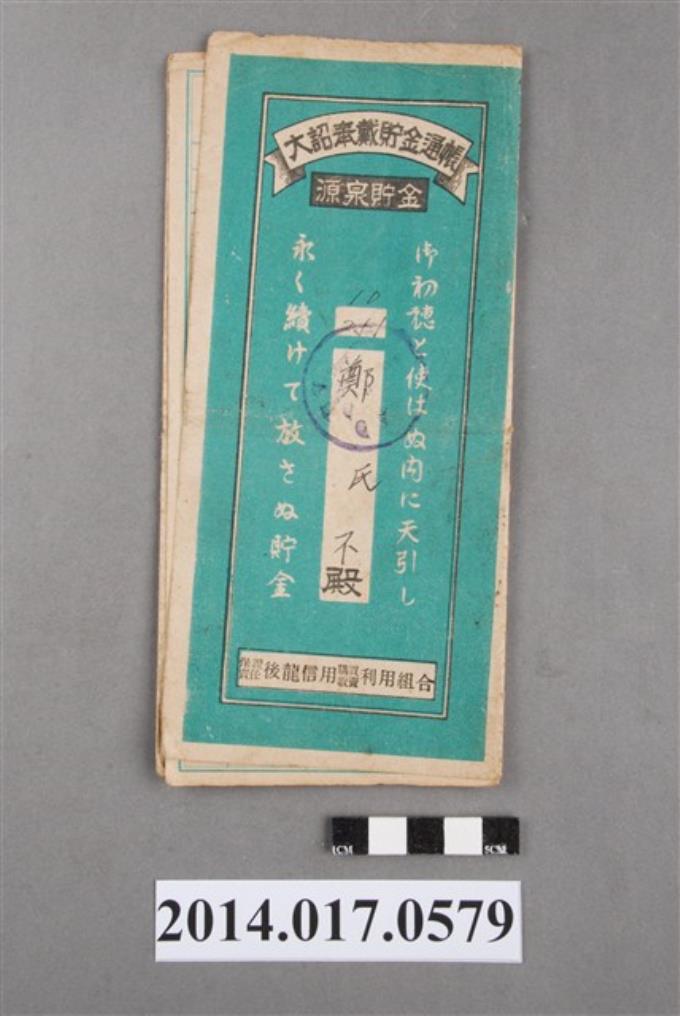 保證責任後龍信用購買販賣利用組合給鄭不大詔奉戴儲金簿