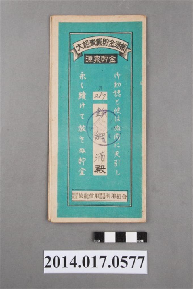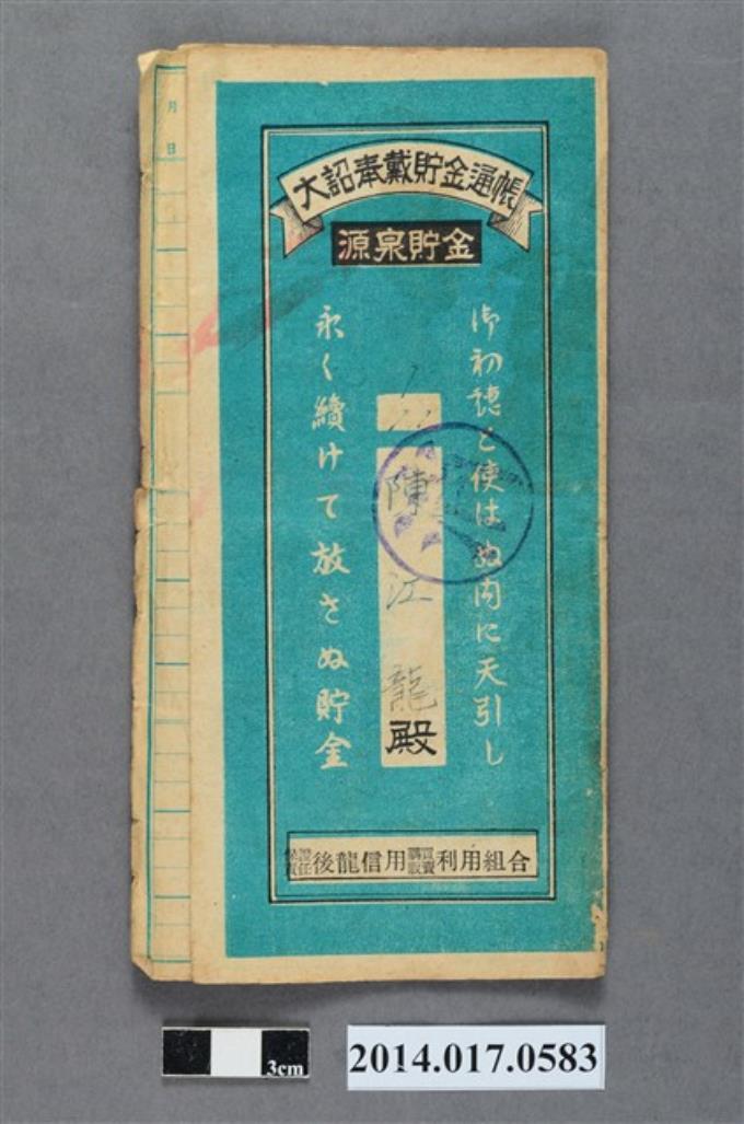 保證責任後龍信用購買販賣利用組合給陳江龍大詔奉戴儲金簿