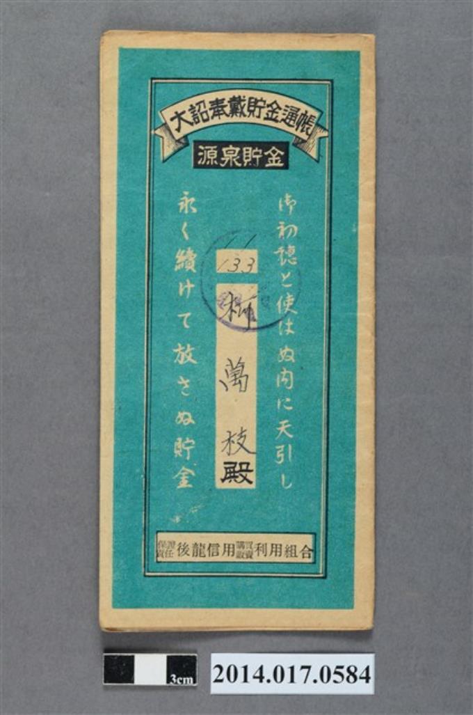 保證責任後龍信用購買販賣利用組合給柯萬枝大詔奉戴儲金簿