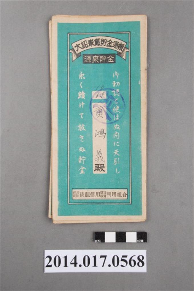 保證責任後龍信用購買販賣利用組合給黃鴻義大詔奉戴儲金簿