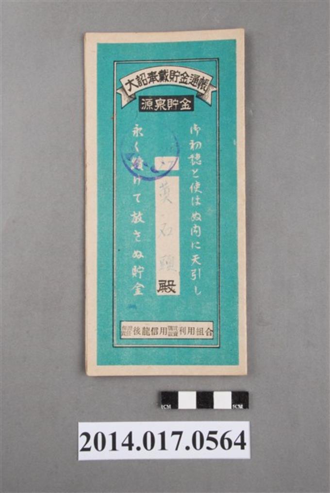 保證責任後龍信用購買販賣利用組合給黃石頭大詔奉戴儲金簿