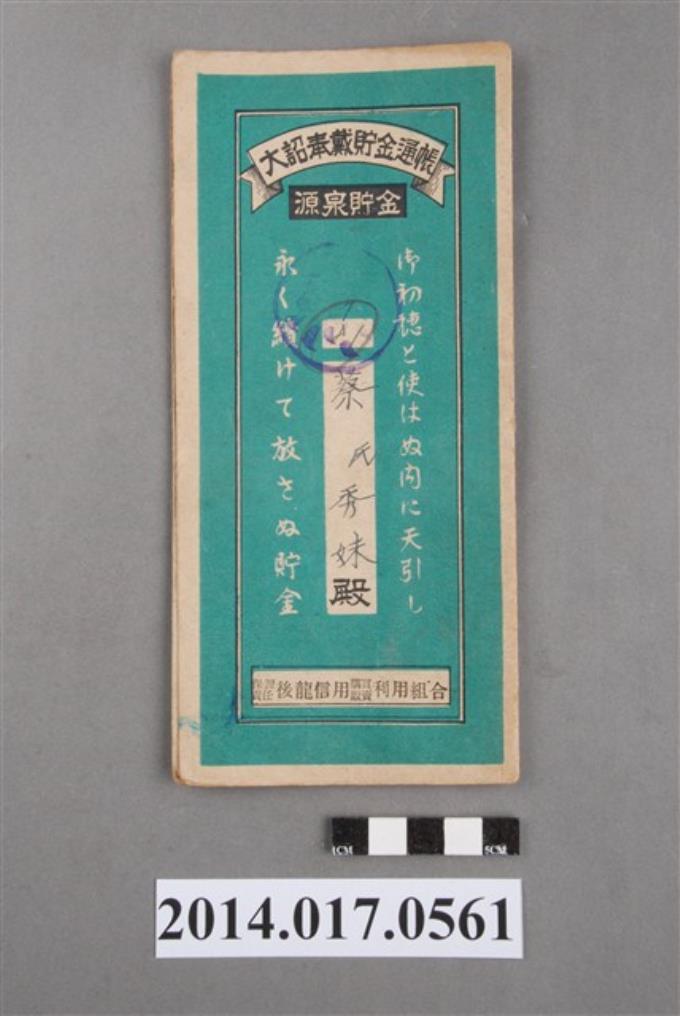 保證責任後龍信用購買販賣利用組合給蔡秀妹大詔奉戴儲金簿
