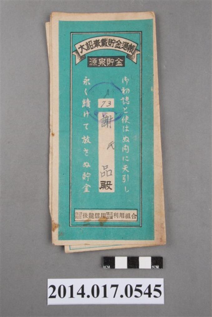 保證責任後龍信用購買販賣利用組合給謝品大詔奉戴儲金簿