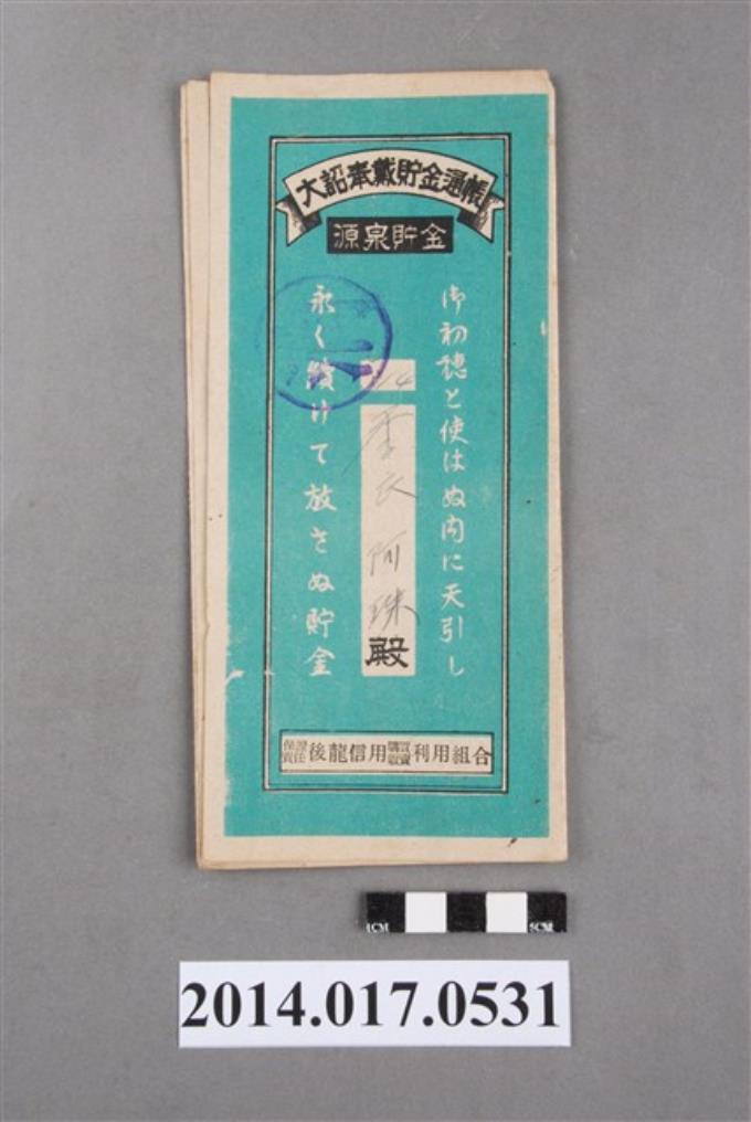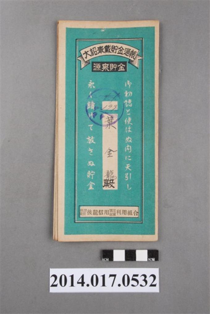 保證責任後龍信用購買販賣利用組合給葉金龍大詔奉戴儲金簿