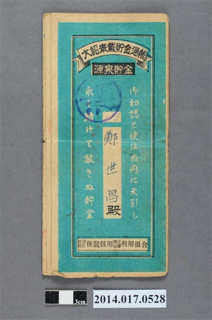 保證責任後龍信用購買販賣利用組合給鄭世昌大詔奉戴儲金簿