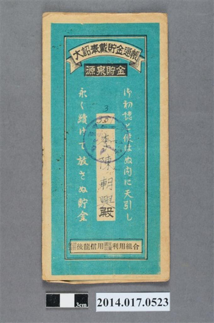 保證責任後龍信用購買販賣利用組合給李陳朝興大詔奉戴儲金簿