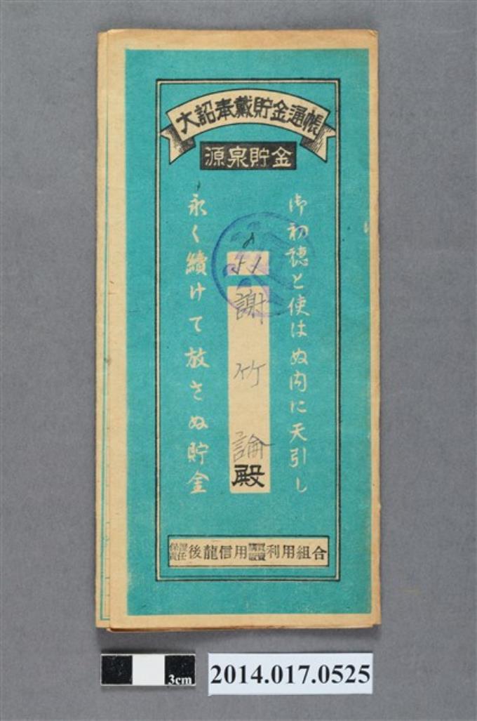 保證責任後龍信用購買販賣利用組合給謝竹論大詔奉戴儲金簿