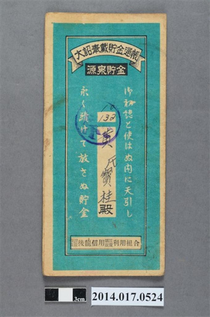 保證責任後龍信用購買販賣利用組合給黃寶桂大詔奉戴儲金簿