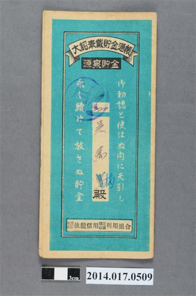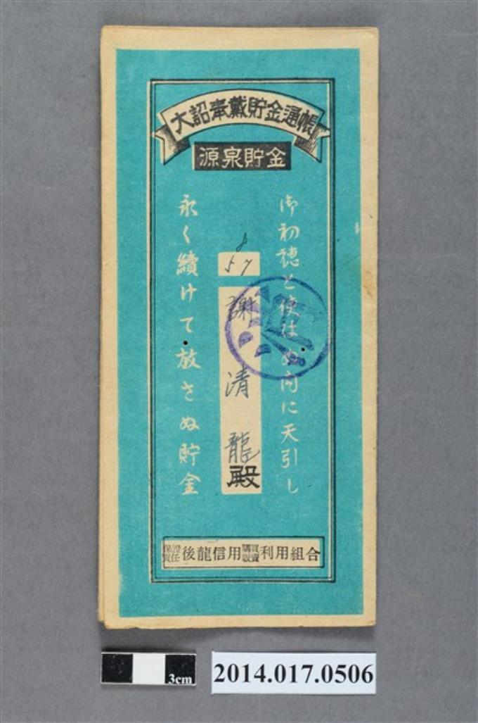 保證責任後龍信用購買販賣利用組合給謝清龍大詔奉戴儲金簿