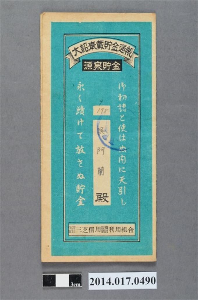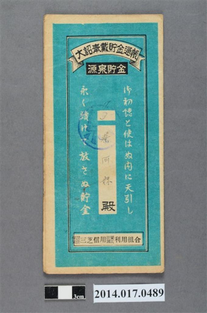保證責任三芝信用販賣購買利用組合給解金石大詔奉戴儲金簿