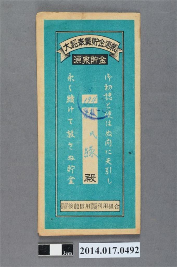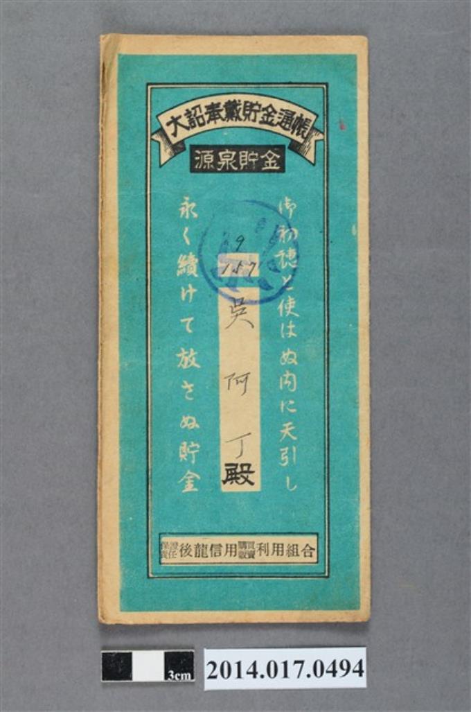 保證責任後龍信用購買販賣利用組合給林綠大詔奉戴儲金簿