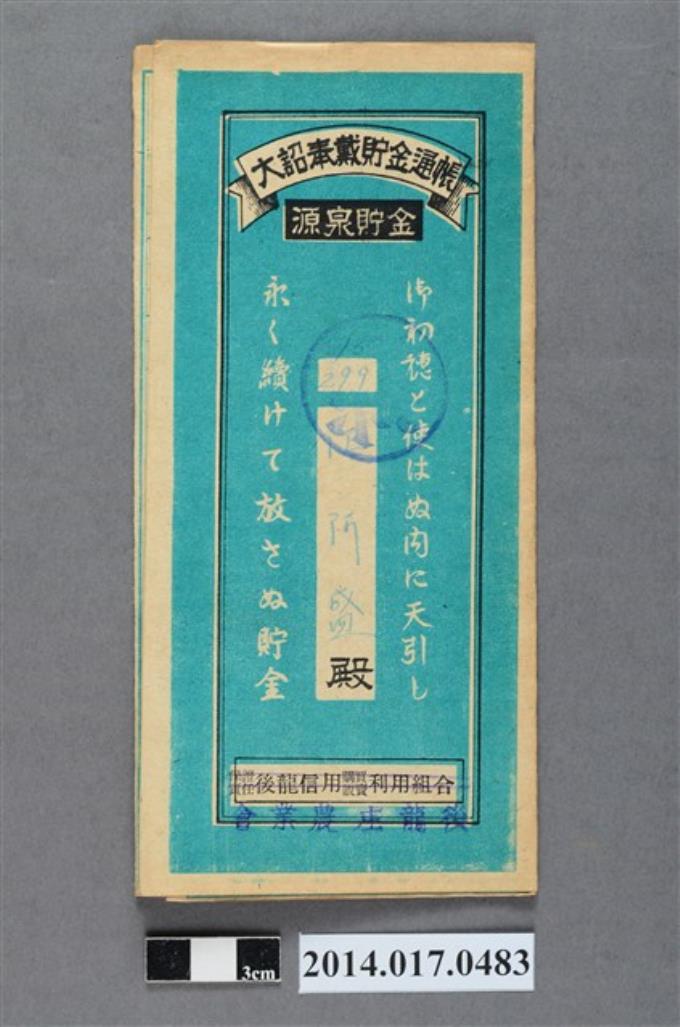 後龍庄農業會給曾浴沐大詔奉戴儲金簿
