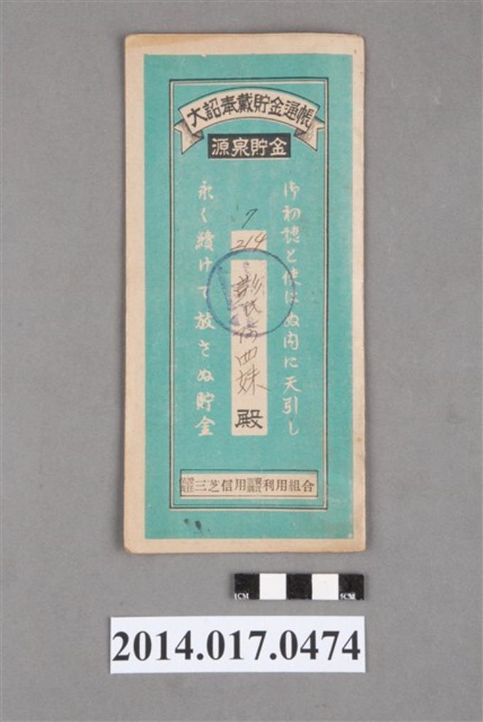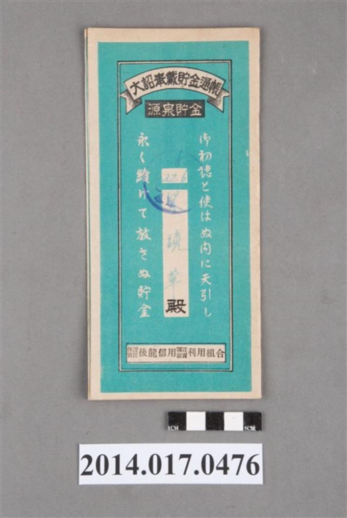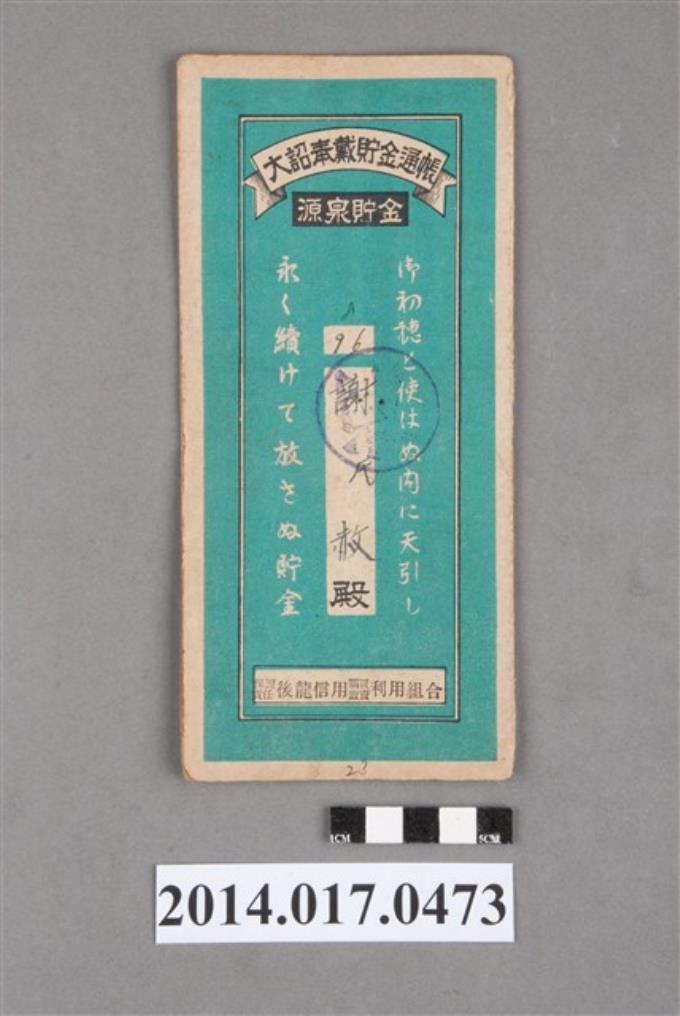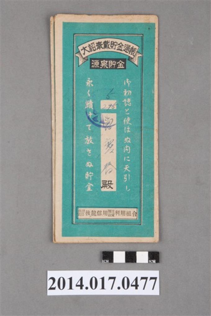 保證責任後龍信用購買販賣利用組合給謝赦大詔奉戴儲金簿