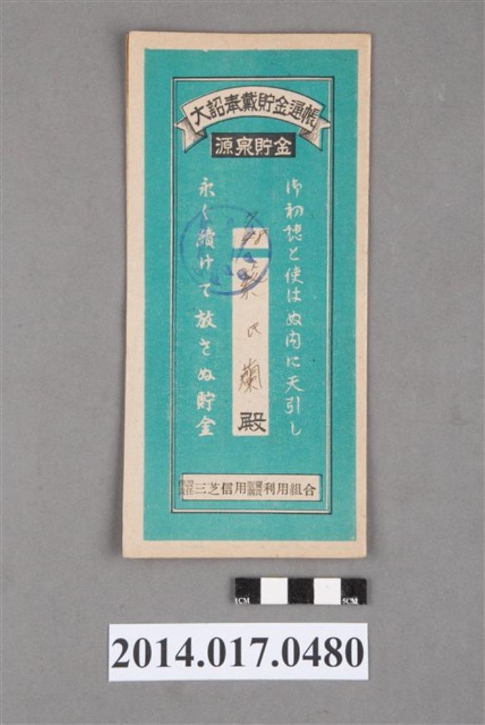 保證責任三芝信用販賣購買利用組合給蔡蘭大詔奉戴儲金簿