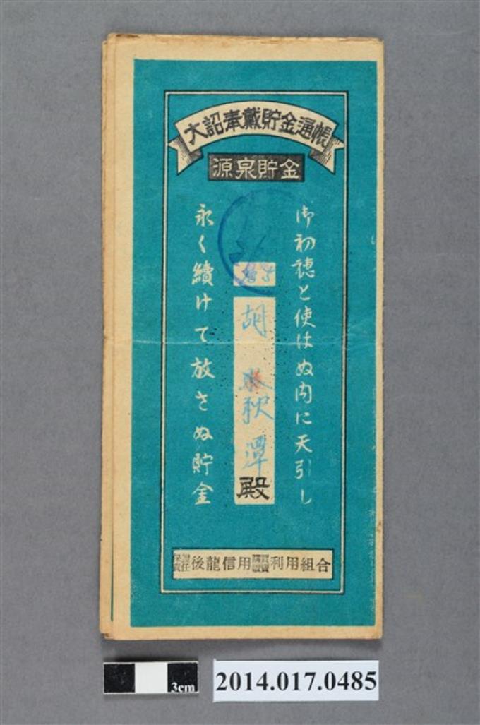 保證責任後龍信用購買販賣利用組合給胡秋潭大詔奉戴儲金簿