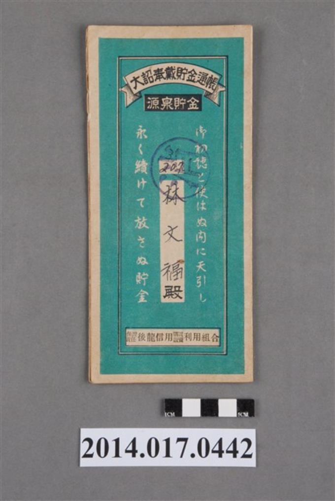 保證責任後龍信用購買販賣利用組合給林文福大詔奉戴儲金簿