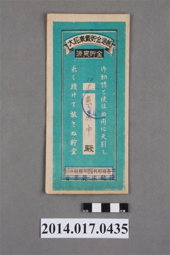 後龍庄農業會給黃庚申大詔奉戴儲金簿