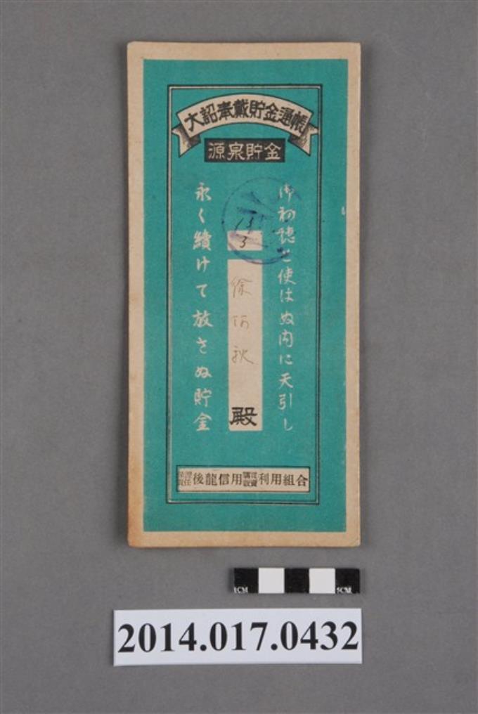 保證責任後龍信用購買販賣利用組合給徐阿秋大詔奉戴儲金簿