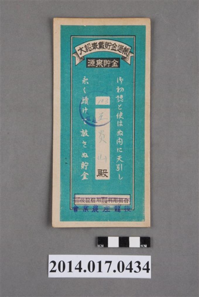後龍庄農業會給王炎山大詔奉戴儲金簿