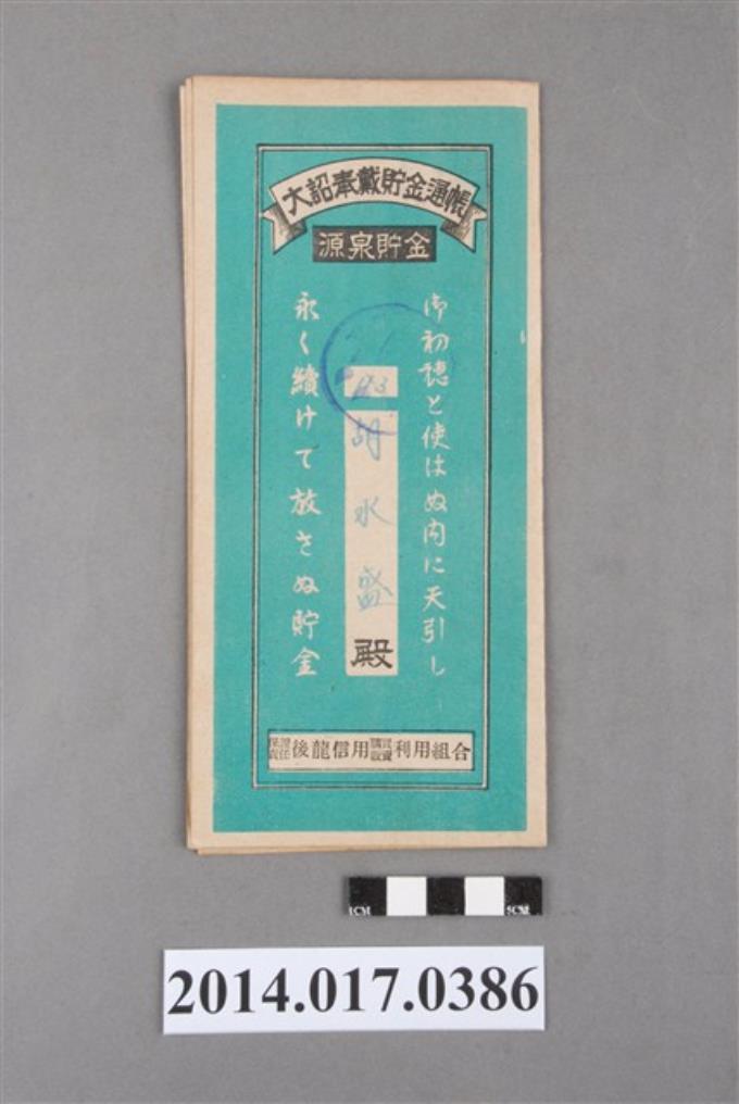 保證責任三芝信用販賣購買利用組合給黎阿添大詔奉戴儲金簿