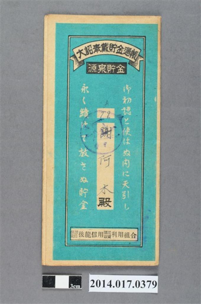 保證責任後龍信用購買販賣利用組合給謝阿木大詔奉戴儲金簿