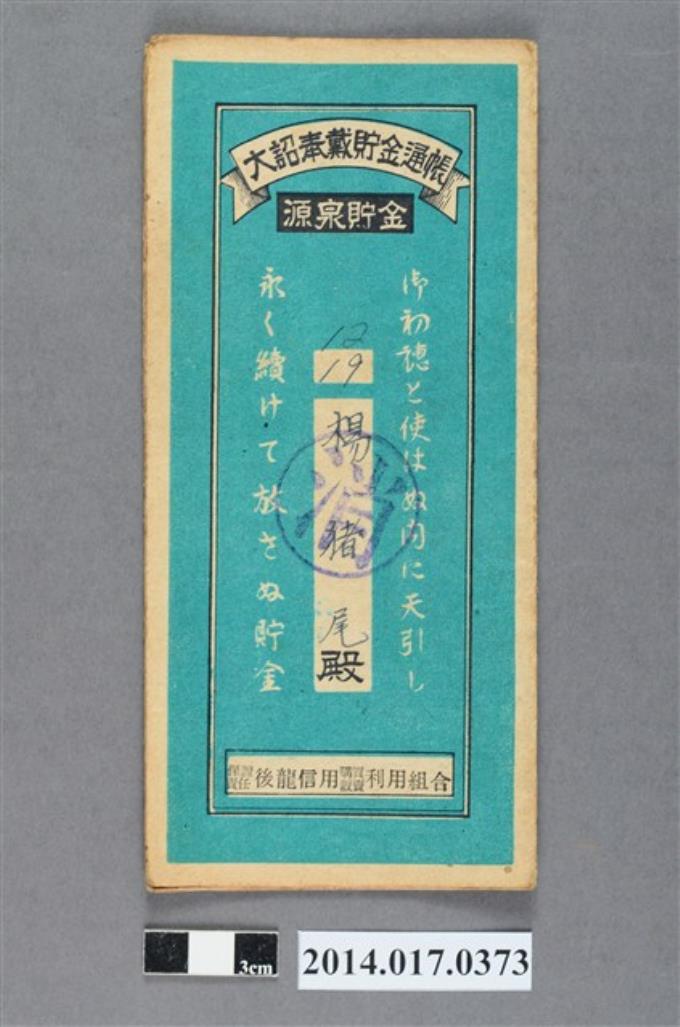 保證責任後龍信用購買販賣利用組合給楊猪尾大詔奉戴儲金簿