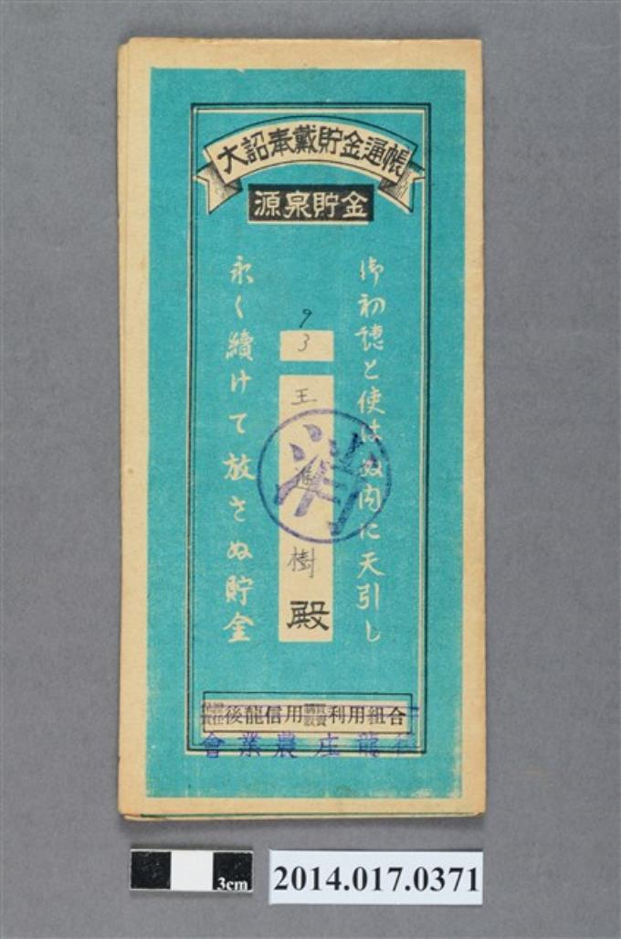 後龍庄農業會給王進樹大詔奉戴儲金簿