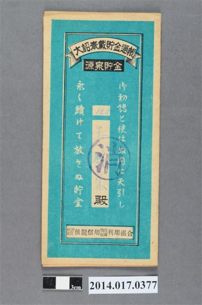 保證責任後龍信用購買販賣利用組合給王聯宗大詔奉戴儲金簿