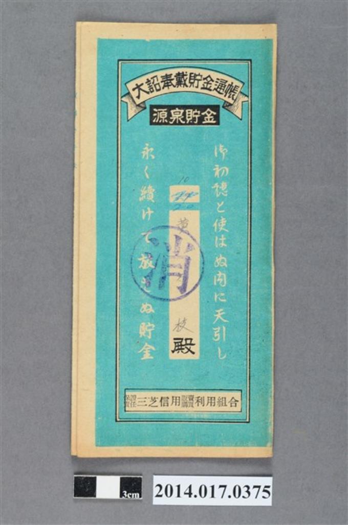 保證責任三芝信用販賣購買利用組合給黃石枝大詔奉戴儲金簿