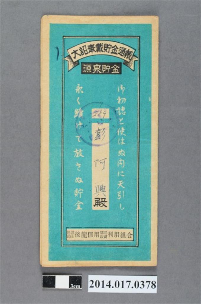 保證責任後龍信用購買販賣利用組合給彭阿興大詔奉戴儲金簿