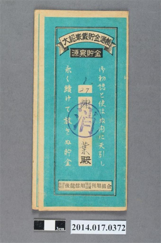 保證責任後龍信用購買販賣利用組合給謝葉大詔奉戴儲金簿