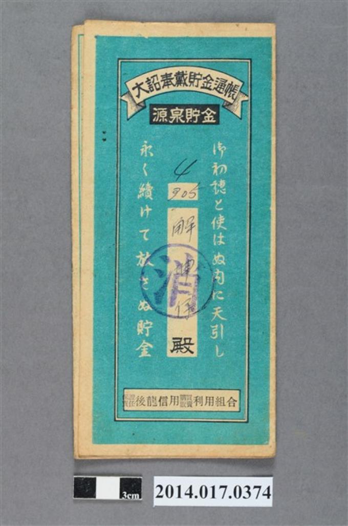 保證責任後龍信用購買販賣利用組合給解坤仔大詔奉戴儲金簿