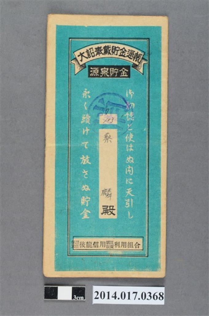 保證責任後龍信用購買販賣利用組合給蔡麟大詔奉戴儲金簿