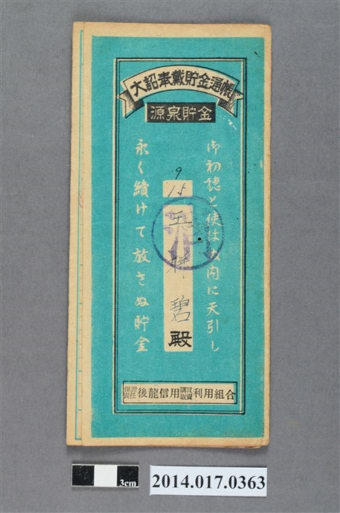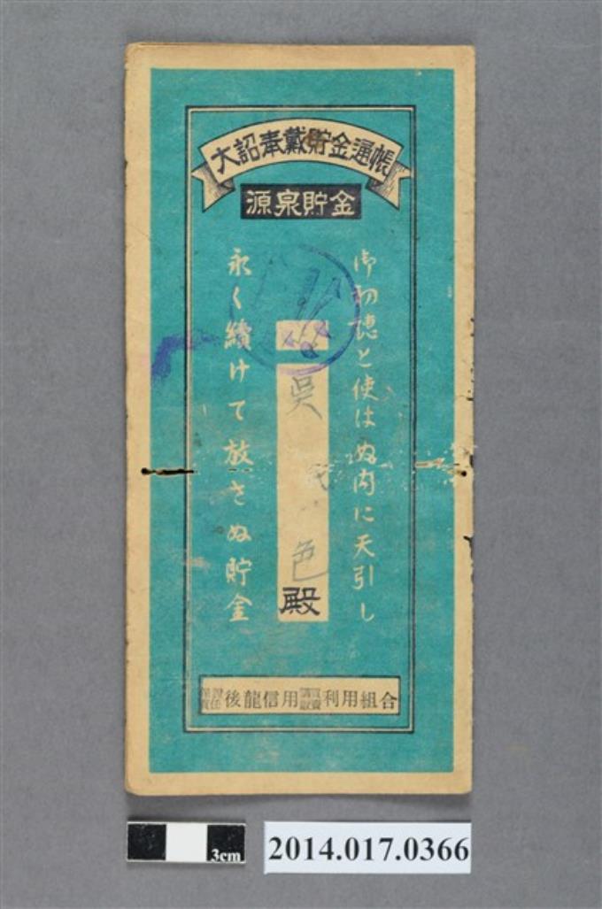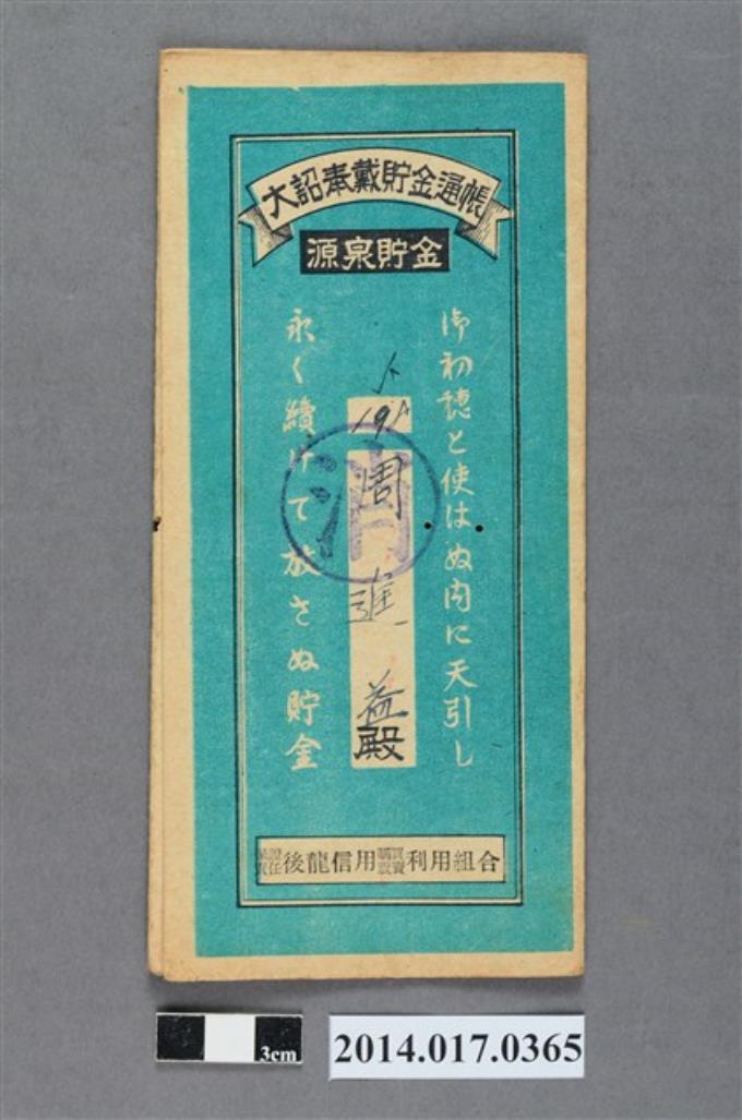 保證責任後龍信用購買販賣利用組合給謝氏金草大詔奉戴儲金簿