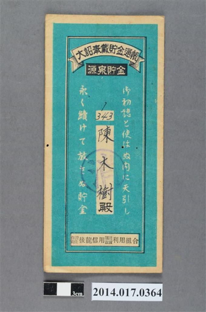 保證責任後龍信用購買販賣利用組合給陳木樹大詔奉戴儲金簿