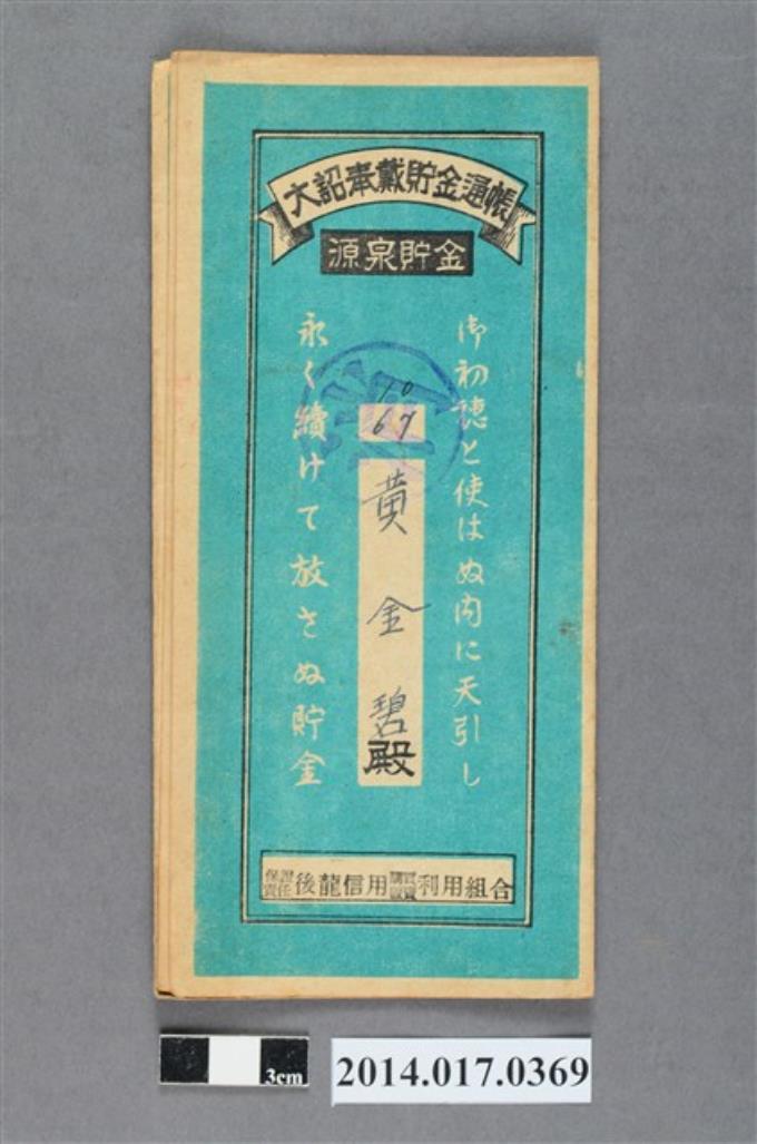 保證責任後龍信用購買販賣利用組合給黃金碧大詔奉戴儲金簿