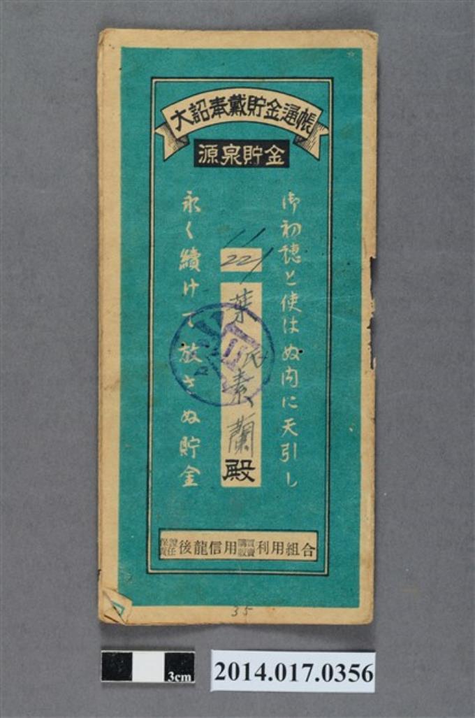 保證責任後龍信用購買販賣利用組合給葉素蘭大詔奉戴儲金簿