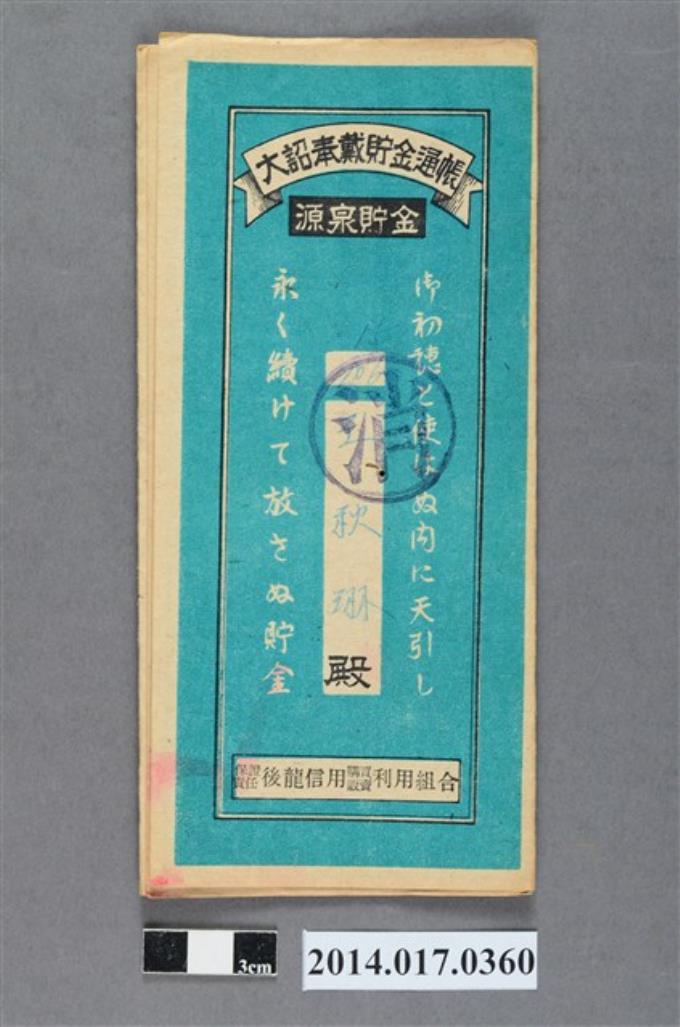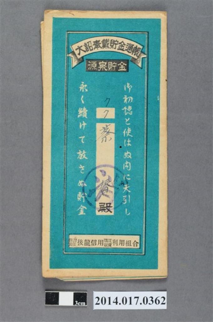 保證責任後龍信用購買販賣利用組合給蔡玉路大詔奉戴儲金簿