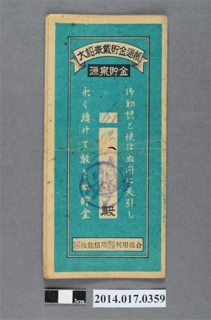 保證責任後龍信用購買販賣利用組合給鄭武儀大詔奉戴儲金簿