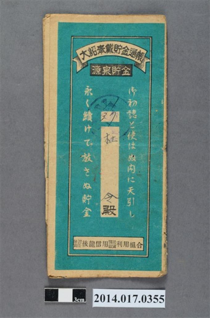 保證責任後龍信用購買販賣利用組合給杜令大詔奉戴儲金簿