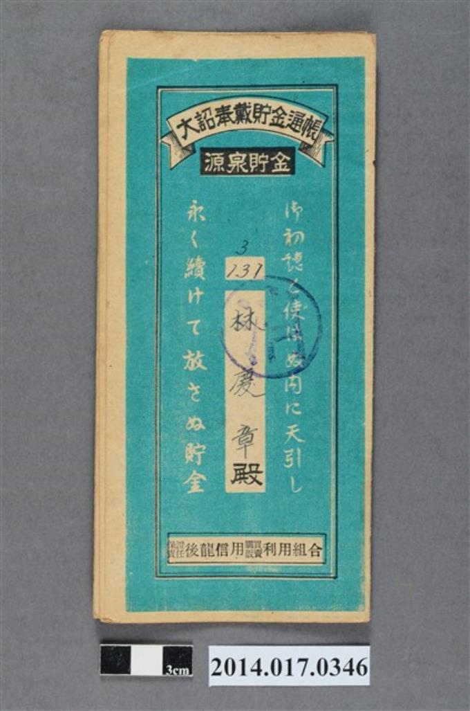 保證責任後龍信用購買販賣利用組合給林慶章大詔奉戴儲金簿