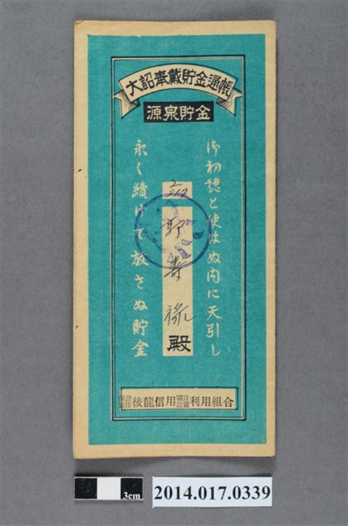 保證責任後龍信用購買販賣利用組合給郭壽祿大詔奉戴儲金簿