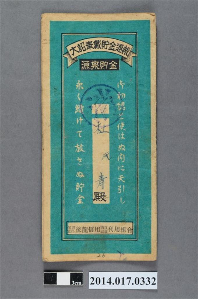 保證責任後龍信用購買販賣利用組合給杜青大詔奉戴儲金簿