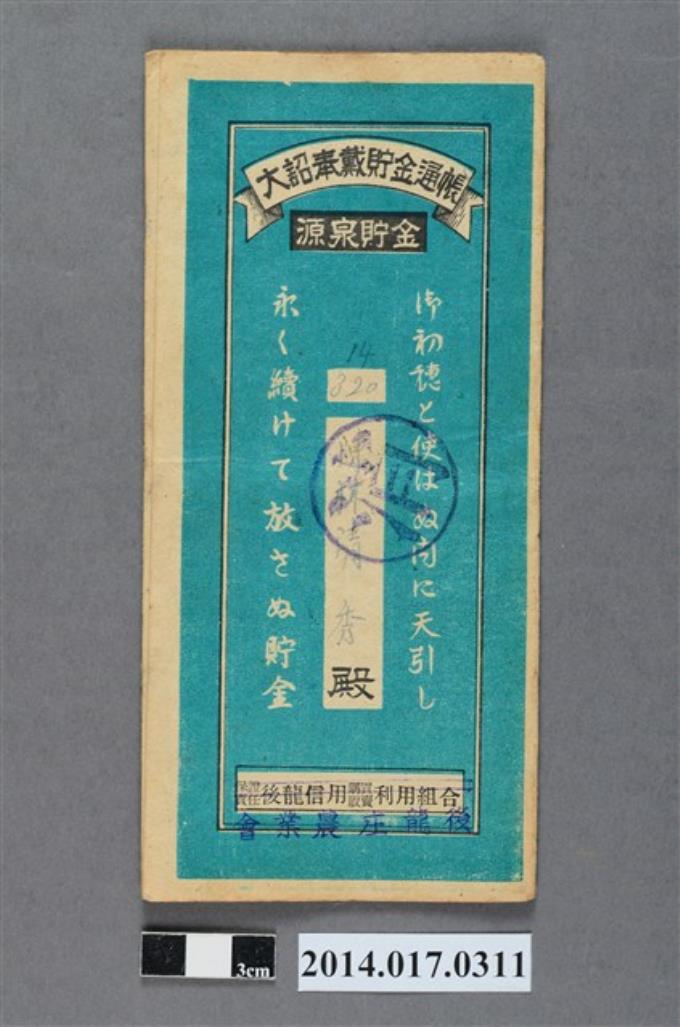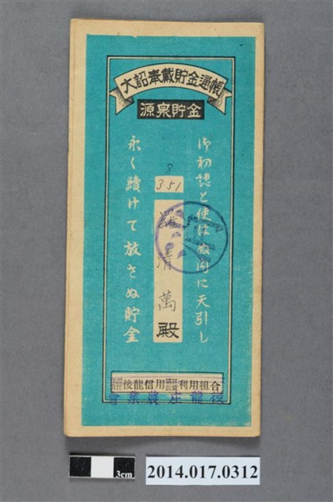 後龍庄農業會給陳林清秀大詔奉戴儲金簿