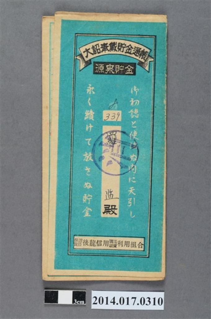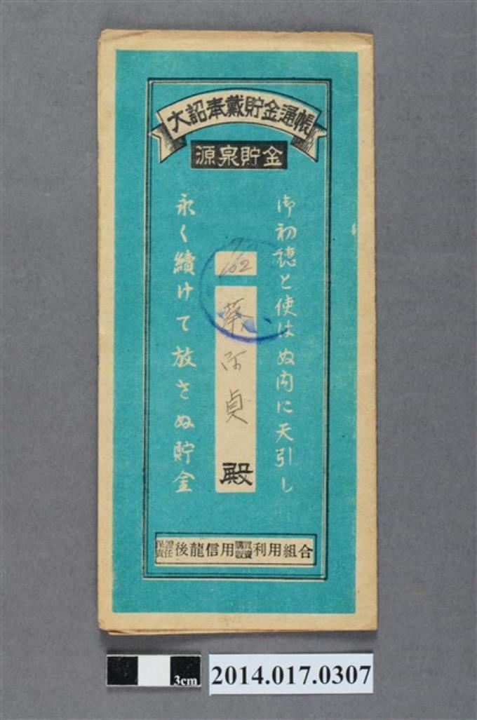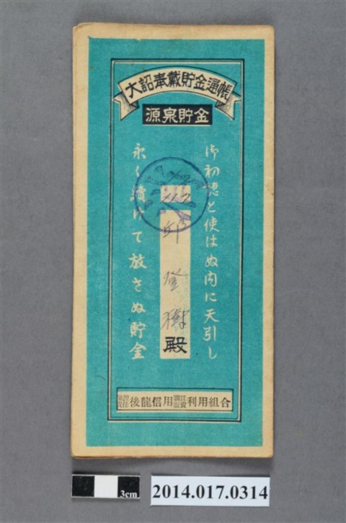 保證責任後龍信用購買販賣利用組合給蔡阿貞大詔奉戴儲金簿