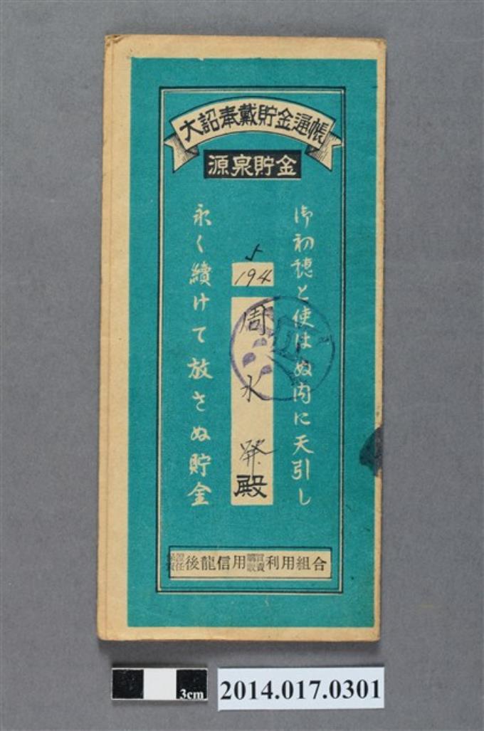 保證責任後龍信用購買販賣利用組合給周水發大詔奉戴儲金簿