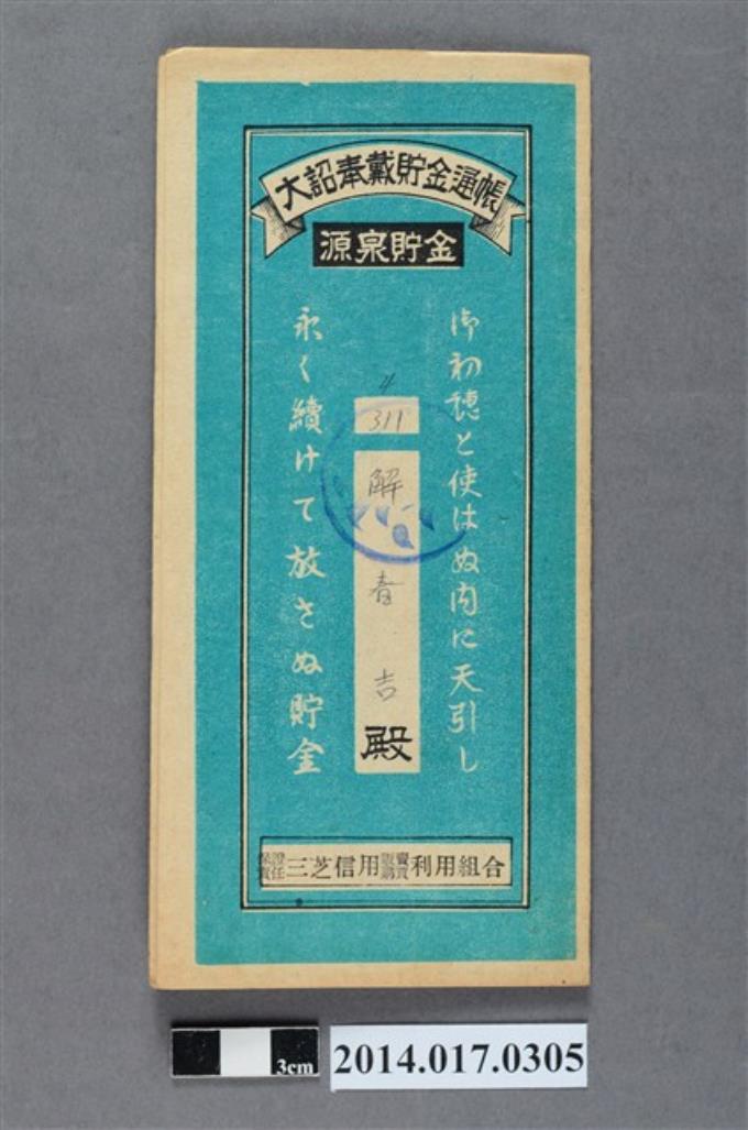 保證責任三芝信用販賣購買利用組合給解春吉大詔奉戴儲金簿